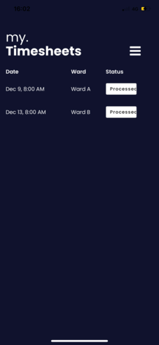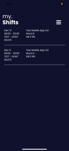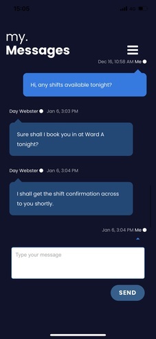Here you will see all booked shifts listed by date. This page will display shift time, date and ward.