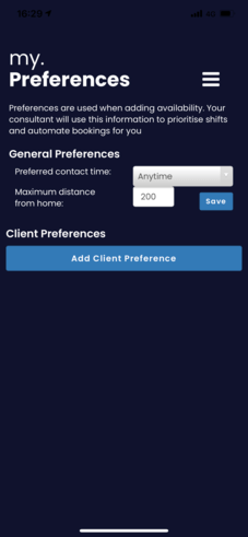 The preferences feature allows you to state what hospitals you are happy to work at. Once you complete your preferences you can search for shifts that match these preferences using the iBook feature, currently available for NHSP hospitals only.